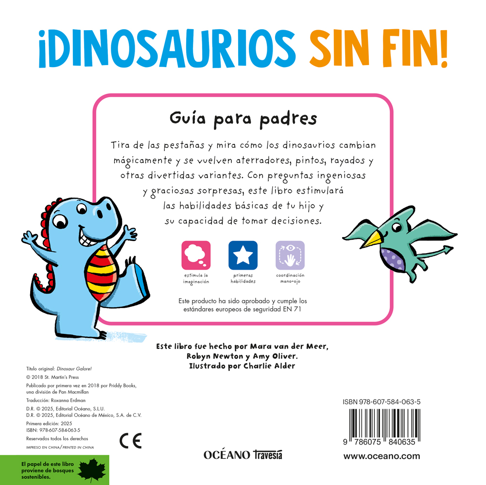¿Cuál es tu favorito? Tira de la lengüeta y elige si te gusta un dinosaurio amistoso o aterrador, o tal vez con rayas ¿o con manchas?